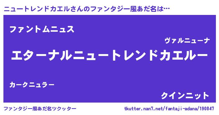 | 意味不明あだ名 | 『ニュートレンドカエルフォーエバー』 |