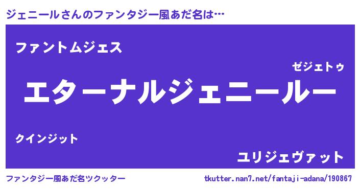 | 意味不明あだ名 | 『ジェニールフォーエバー』 |
