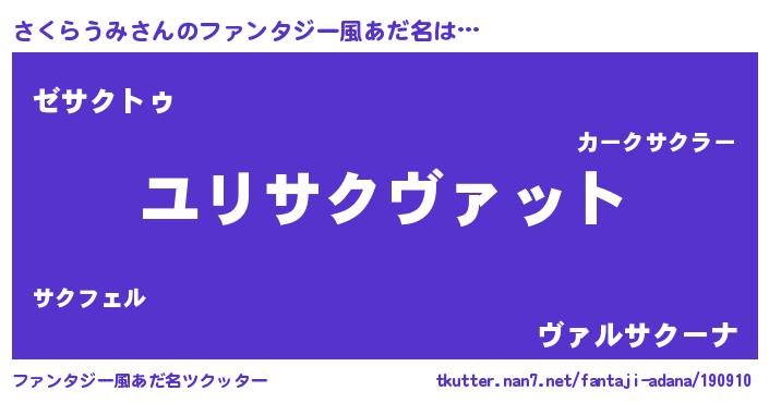 | ヒーロー風カッコイイあだ名 | 『最強戦士サクラウミ』『仮面サクダー』 |