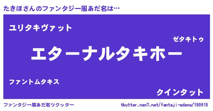 | 男性向けラノベタイトル風あだ名 | 『たきほに滅ぼされるだけの簡単なお仕事です』 |