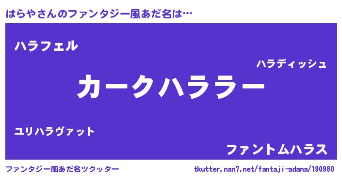 | ヒーロー風カッコイイあだ名 | 『スーパーハラヤ』『炎刃騎士ハラ』 |