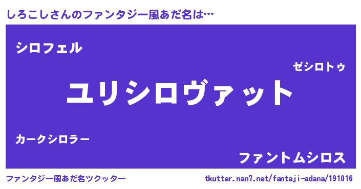 | 男性向けラノベタイトル風あだ名 | 『シロコシスレイヤー』『しろこしの憂鬱』 |