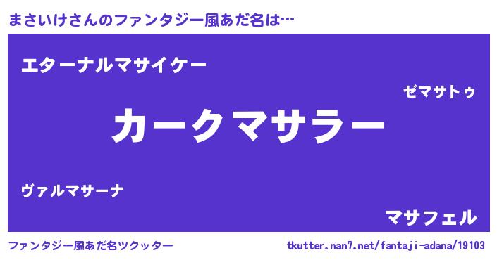 | 男性向けラノベタイトル風あだ名 | 『緋弾のマサイケ』『魔弾の王とまさいけ』 |