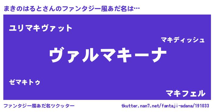 | 男性向けラノベタイトル風あだ名 | 『この素晴らしい世界にまきのはるとを!』 |