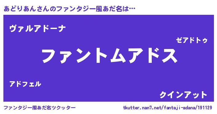 | 男性向けラノベタイトル風あだ名 | 『あどりあんの嫁は女の子じゃないと思った?』 |