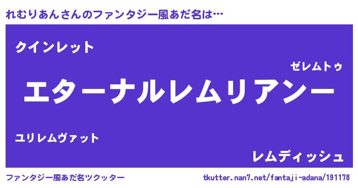 | 男性向けラノベタイトル風あだ名 | 『やはりれむりあんの青春ラブコメはまちがっている 』 |