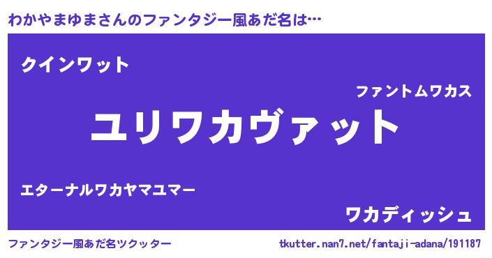 | 男性向けラノベタイトル風あだ名 | 『ワカヤマユマスレイヤー』 |