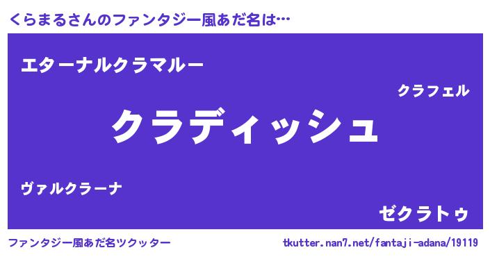 | 女子向けラノベタイトル風あだ名 | 『くらまるの契約王妃』『闇のくらまる』 |