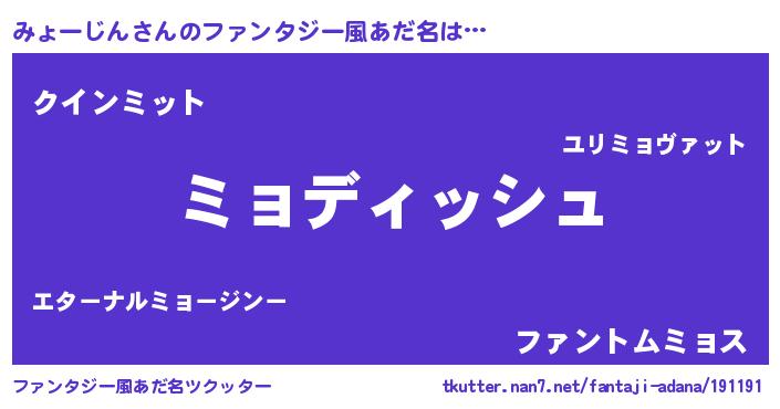 | ヒーロー風カッコイイあだ名 | 『ネオミョージン』『黄金騎士ミョ』 |