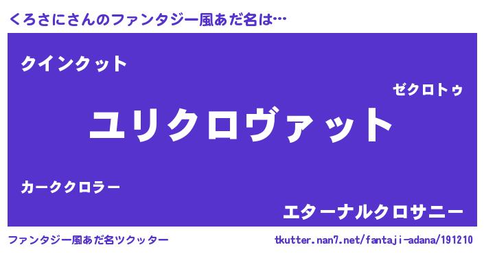 | 男性向けラノベタイトル風あだ名 | 『くろさに~年齢イコール彼女いない歴の魔法使い~』 |