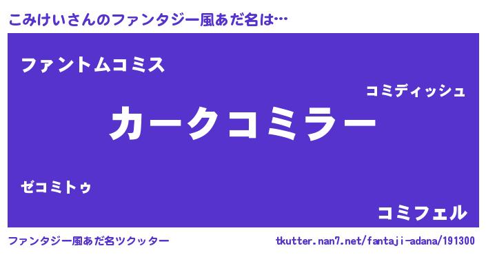 | 意味不明あだ名 | 『とにかく怪しいこみけい』 |