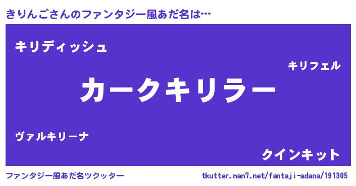 | ヒーロー風カッコイイあだ名 | 『ネオキリンゴ』『慈愛の使者きりんご』 |