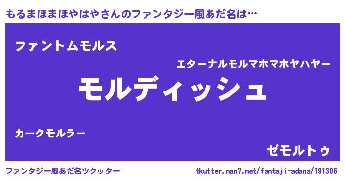 | 胡散臭い通販商品みたいなあだ名 | 『来世でも幸せになれる水素水…その名も「もるまほまほやはや」』 |