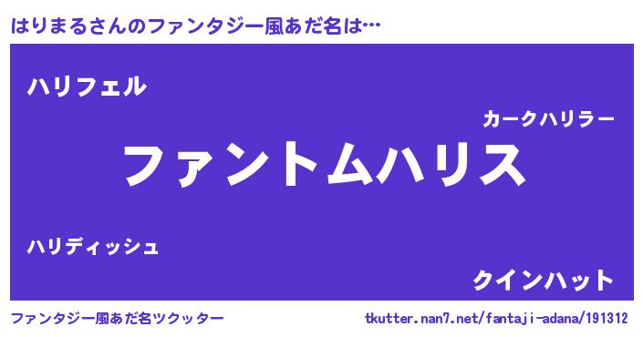 | 自動車の名前っぽいあだ名 | 『ハルトリパン』『ハリティマ』 |