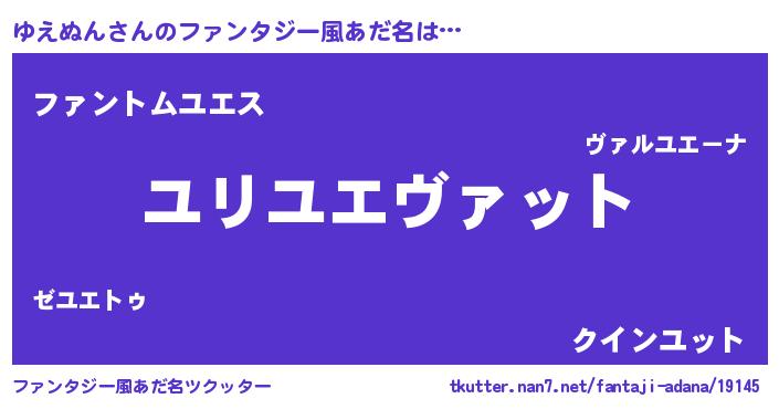 | ヒーロー風カッコイイあだ名 | 『幻影騎士ユエ』『慈愛の使者ゆえぬん』 |