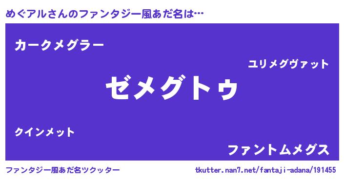 | 女子向けラノベタイトル風あだ名 | 『闇のめぐアル』『めぐアル様がみてる』 |
