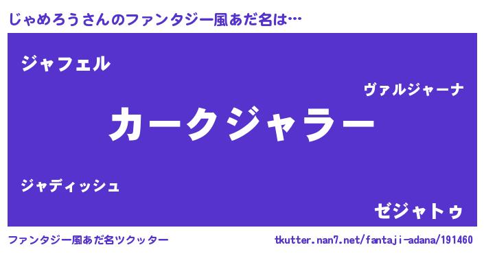 | 胡散臭い通販商品みたいなあだ名 | 『億万長者になれる霊験あらたかなお札…その名も「じゃめろう」』 |