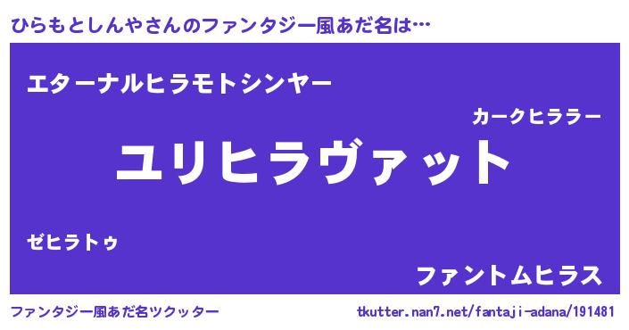 | 男性向けラノベタイトル風あだ名 | 『転生したらひらもとしんやだった件』 |