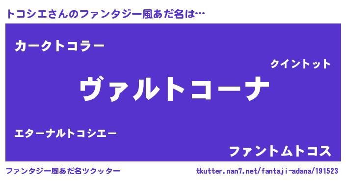 | 女子向けラノベタイトル風あだ名 | 『乙女ゲームの破滅フラグしかない悪役トコシエに転生してしまった…』 |