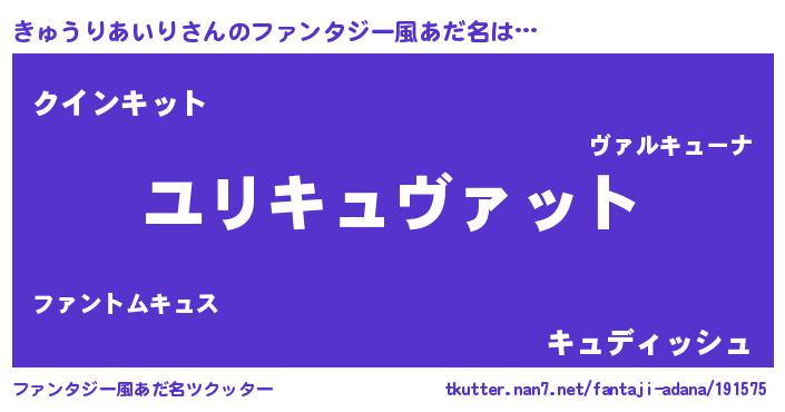 | 伝説のあだ名 | 『魔王と互角に渡り合う占い師きゅうりあいり』 |