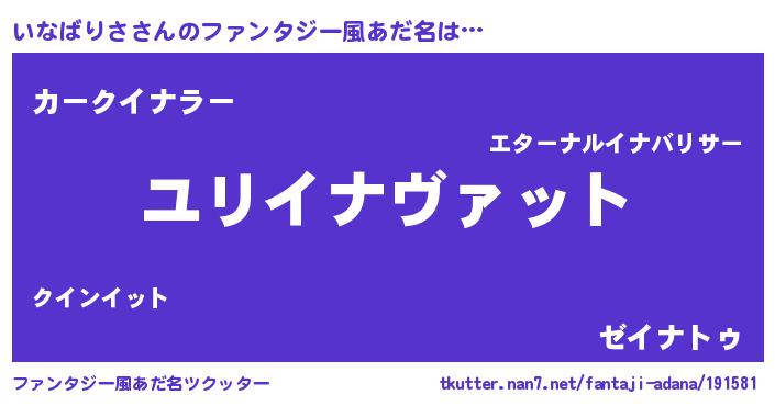 | ヒーロー風カッコイイあだ名 | 『最強戦士イナバリサ』『仮面イナダー』 |