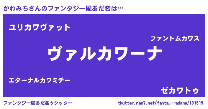 | 男性向けラノベタイトル風あだ名 | 『魔弾の王とかわみち』 |