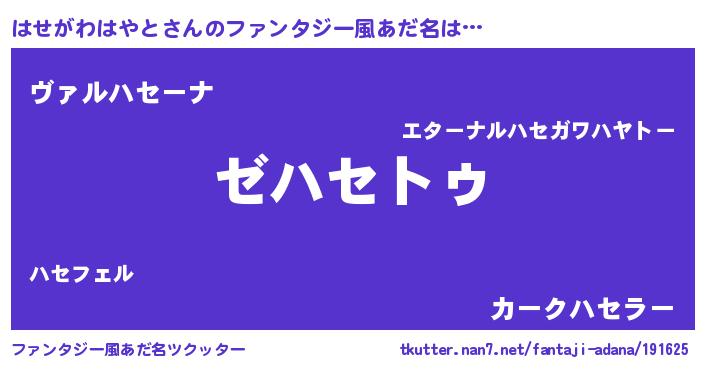 | 意味不明あだ名 | 『自称はせがわはやと』 |