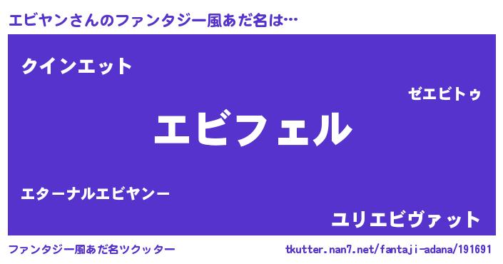 | 男性向けラノベタイトル風あだ名 | 『エビヤンの憂鬱』 |