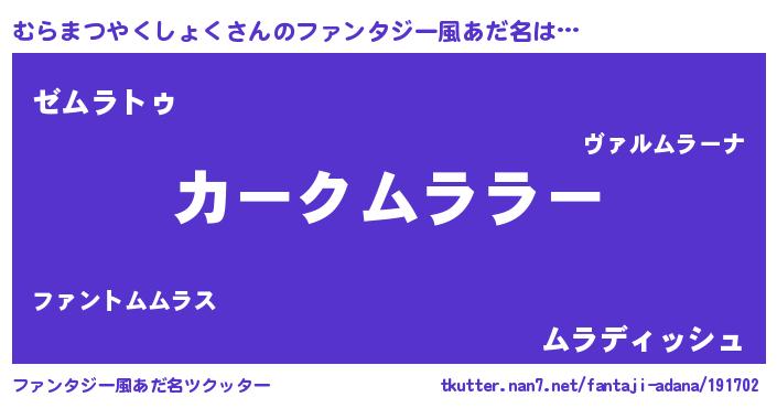 ヘコむあだ名 | 『むらまつやくしょく(遠い目)』『むらを』 |