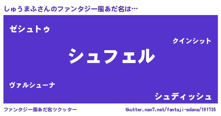 | ヘコむあだ名 | 『しゅにゅー』『しゅうまふ(小並感)』 |