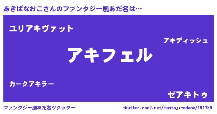 | 男性向けラノベタイトル風あだ名 | 『アキバナオコアートオンライン』 |