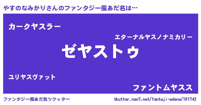 | 意味不明あだ名 | 『自称やすのなみかり』 |