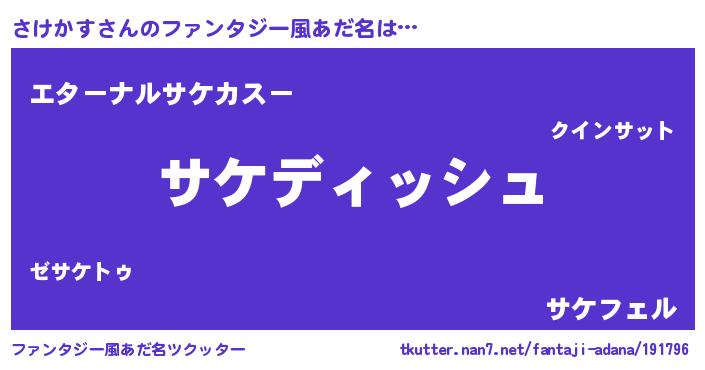 | 男性向けラノベタイトル風あだ名 | 『さけかすという概念が存在しない退屈な世界 』 |