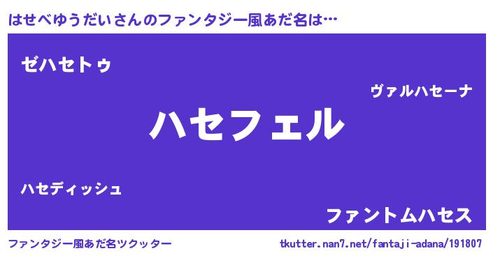 | ヒーロー風カッコイイあだ名 | 『スーパーハセベユウダイ』 |