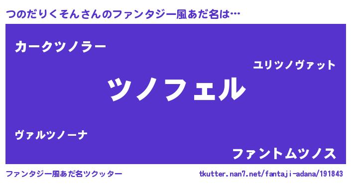 | 男性向けラノベタイトル風あだ名 | 『つのだりくそんの憂鬱』 |