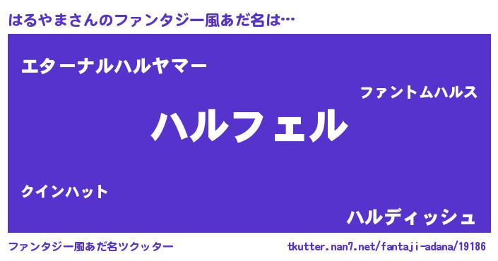 | 男性向けラノベタイトル風あだ名 | 『ハルヤマアートオンライン』 |