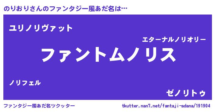 | 女子向けラノベタイトル風あだ名 | 『のりおりの卵を拾いまして』 |