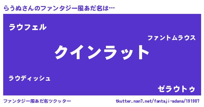 | 胡散臭い通販商品みたいなあだ名 | 『100人中100人が認めたイリジウム磁石…その名も「らうぬ」』 |