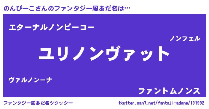 | 料理風あだ名 | 『のんぴーこごはん』 |