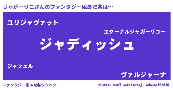 | 男性向けラノベタイトル風あだ名 | 『じゃがーりこという概念が存在しない退屈な世界 』 |