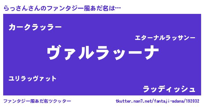 | ヘコむあだ名 | 『らっさん(苦笑)』『なまこ酢』 |