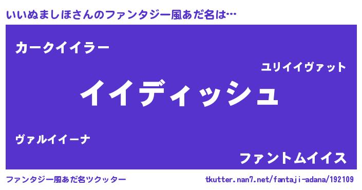 | 男性向けラノベタイトル風あだ名 | 『いいぬましほという概念が存在しない退屈な世界 』 |