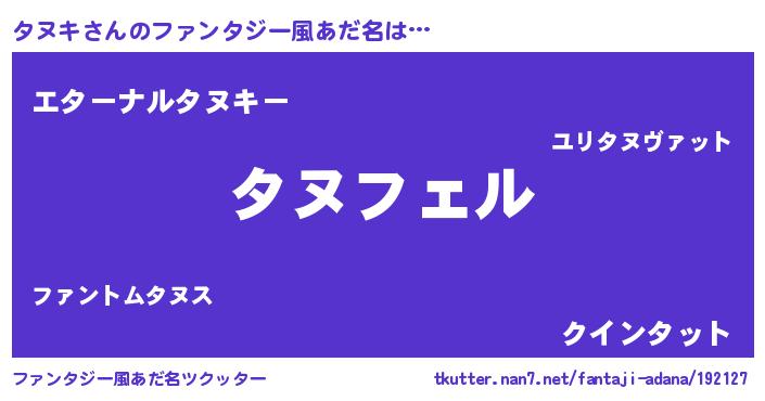 | 自動車の名前っぽいあだ名 | 『タヌティマ』『タスラー』『タント』 |