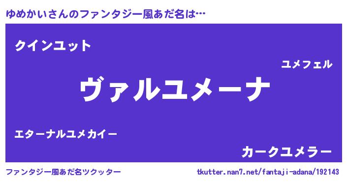 | ポケモン風あだ名 | 『ユーメイ』『ユックウザ』 |