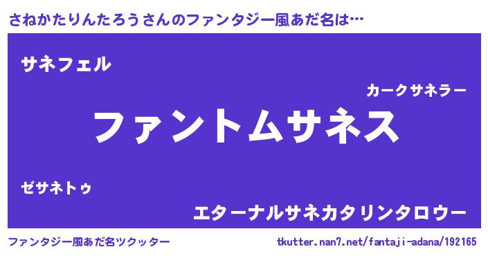 | 欧米人風あだ名 | 『アンジェラ・さねかたりんたろう』 |