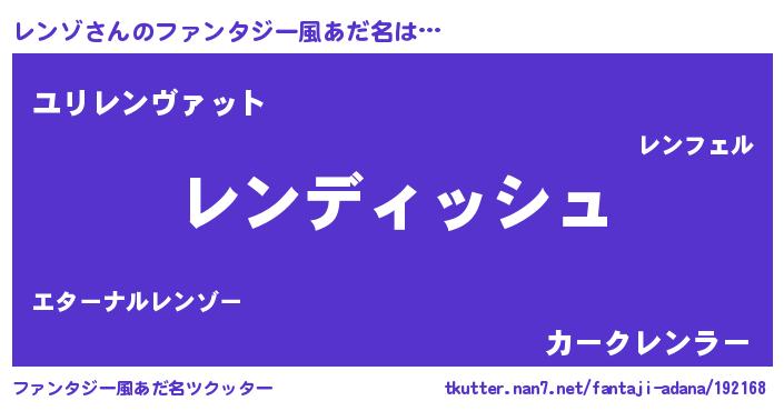 | 男性向けラノベタイトル風あだ名 | 『レンゾという概念が存在しない退屈な世界 』 |