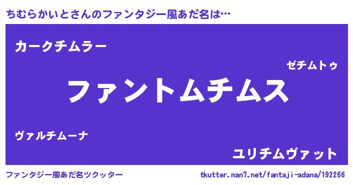 | 胡散臭い通販商品みたいなあだ名 | 『信頼と実績のペンダント…その名も「ちむらかいと」』 |