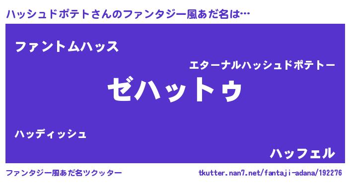 | ポケモン風あだ名 | 『ハッセウス』『ヒハッシュドポテト』 |