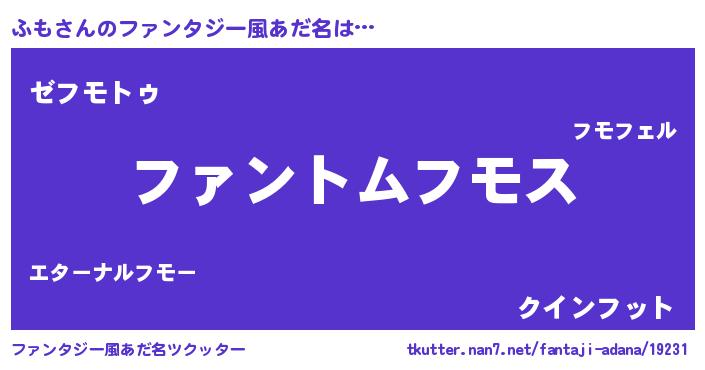 | ポケモン風あだ名 | 『ヒフモ』『フモセウス』『フモゴンZ』 |