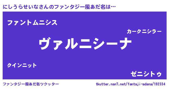| 意味不明あだ名 | 『住所不定無職にしうらせいな(47歳)』 |